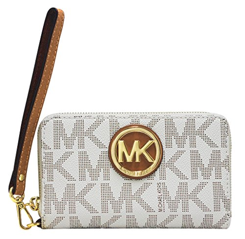 -. Feature : Vanilla Gold phone case wallet / MK Signature PVC / Zip-around closure / Golden hardware / 6.75 W x 4 H x 1 D (inches)