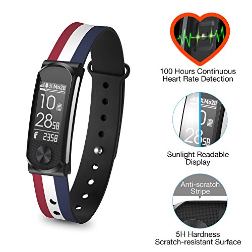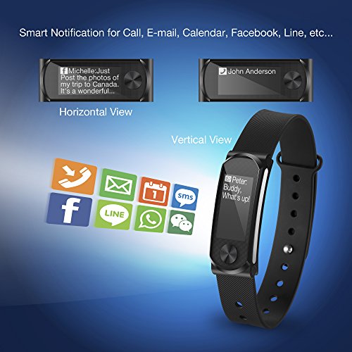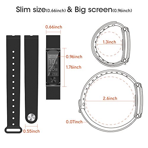 -. Feature : 【100 Hours Continuous Heart Rate Detection】: The built-in ultra-low power optical sensor can continuously track your heart rate over 100 hours. You can optimize your workout using real-time heart rate zones throughout your exercises and reach calorie burned goal of your fitness plan. / 【95% Accurate Metrics】: If you use the device to track 3 or more runs using connected GPS (connected to the GPS of your phone), we automatically calibrate your stride length by using our exclusive algorithm to deliver highly accurate step, distance, and speed. Once this is done, your measured speed and distance will be up to 95% accuracy any time you run without carrying your phone. The GPS calibrated stride makes this equipment outperform other wristbands in the market. / 【 Smart Text Notification for 10 Days Compatible to Android & iPhone】: Q-Band offers notifications of calls, SMS, emails, calendar events, LINE, Facebook, WeChat, WhatsApp, etc. Notifications will be alerted via text and vibration. In addition, out-of-range vibration alert is also built in to prevent you from forgetting to bring your phone. Q-Band may last for up to 10 days without charging with notification enabled and with heart rate detection on 2 hours per day in workout. / 【Sleep Monitor & Silent Alarm】: Q-Band can track the quality of sleep to help you obtain a better routine. By setting the alarm clock in the APP, it will awake you via silent vibration, and allows you to get up from a good sleep without a rush. / 【Slim, Stylish & Sunlight Readable Scratch-Resistant Big Screen】: Its 0.66 inch slim body is equipped with a vertical-viewing, sunlight-readable 128x64 pixel 0.96 inch big display to offer you more information at a glance. Q-Band adopts a 5H hardness Tempered Acrylic screen, which is commonly used in the automobile industry. And more, its 0.2 mm raised edges create a recess to further protect the screen from scratches. Its changeable band makes it more fun and flexible for your dressing style.
