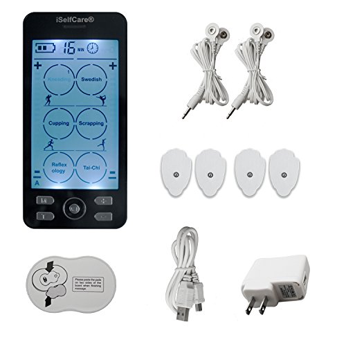 FEATURES - Most Advanced! – iSelfCare device has 6 operation interfaces with 24 sub-modes, which can give certain electrical pulses through electrode adhesive pads to the suggested area of the body where the electrodes are placed. The large and easy to read LCD display screen can show battery power, selected mode, current intensity, time remaining of an application mode, and indication of an A and B shift.