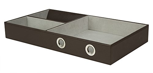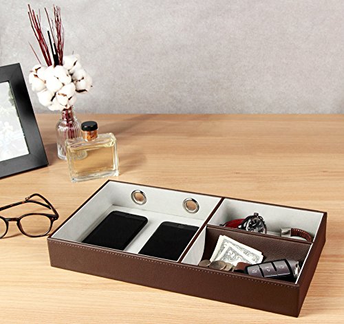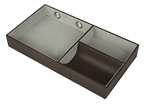 JackCubeDesign Multi Valet Tray Leather, Desk or Dresser Organizer, Catch-all for Keys, Phone, Wallet, Coin, Jewelry and More with 3 Compartments (Dark Brown, 14.2 x 7.7 x 2 inches)-MK234A