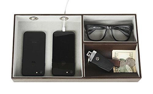 FUNCTION - Allows smart phone to be charged easily with 2 holes for charging lines and to store coins, keys, telephone, glasses, wallets, jewelry and other accessories