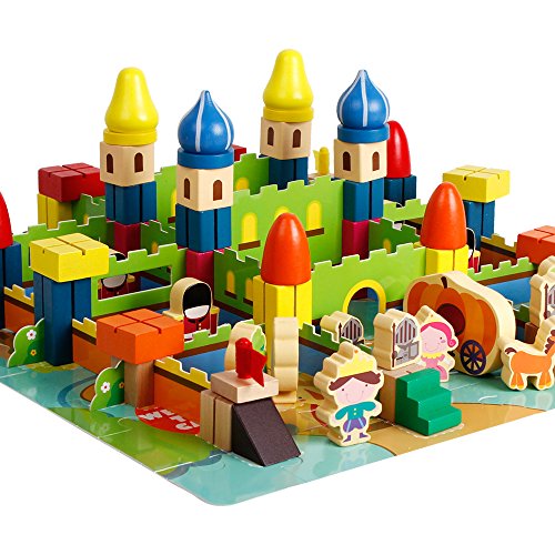 -. Feature : Includes 78 fine wooden building blocks, 64 puzzle pieces, 38 castle wall pieces. / Made of durable wood. water based paint, safe and non-toxic child safe materials. / Develops kid fine motor skills, hand-eye coordination, color and shape recongnition, counting and sorting, spatial relationships. / Encourages kids creativity, imaginative play and storytelling through role-play. / For age 3 years old and up. Great toys for parent-child interaction.