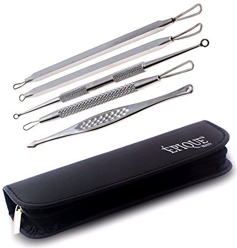 Epique Beauty Blackhead, Blemish and Comedones Extractor Black - Great Acne Pimples Remover Tool Kit - Professional Facial Set