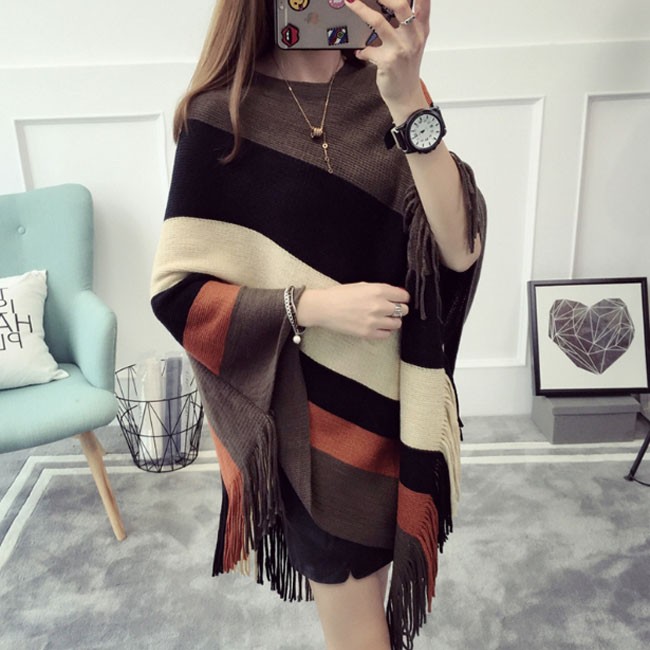 | 商品名 | ニットセーター レディース ボーダー柄 フリンジ ポンチョ プルオーバー ケープ マント イレギュラーセーター ニットソー トップス おしゃれ |