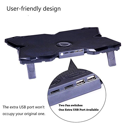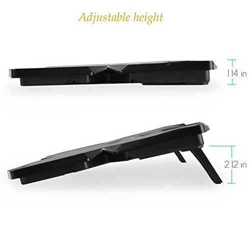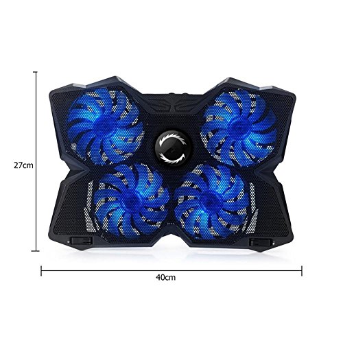 -. Feature : Four-core Depth Cooling: With 4 big senior high speed fan, 360 degree depth cooling, multi-directional heat dissipation, quickly disperse heat. You can play game no worries / Multi-angle bracket adjustment: Close to ergonomic, different angle adjustment settings, suitable for different height of the use of people, care of the cervical spine, lumbar spine / Mute Fan: With a high-speed mute fan, even if it's running at high speed, it doesn't interfere with your gaming experience / High and Low Baffle: higher angle, thicker notebook can be placed securely, do not worry about slipping, secure, and has a hidden type storage box / Adjustable Wind Speed Double Switch: Switch heatsink does not need to plug the USB every time, to avoid damage to the USB interface, and wind speed can be freely adjusted to meet your varying degrees of heat demand