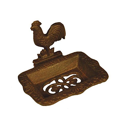 TI011 Bestplus Classic Cast Iron Soap Dish, Rooster Shape, Antique Rust