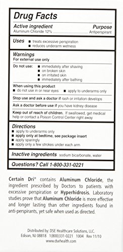 A Closer Look: Certain Dri Excessive Perspiration Antiperspirant Roll-On is tested by dermatologists to treat excessive perspiration. Its active ingredient aluminum chloride can block the pores to reduce the release of sweat and help absorb moisture that causes odor.