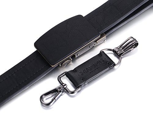 ADJUSTABLE FIT - Up to 44" or 54" in waist, this belt comes with a trim to fit option and adjustable marks for exact measurement. EASY USE Just slide the belt into the buckle and pull the belt through. The buckle simply auto locks the belt. To release the belt, gently push the lever on the side of the buckle and the lock will snap.
