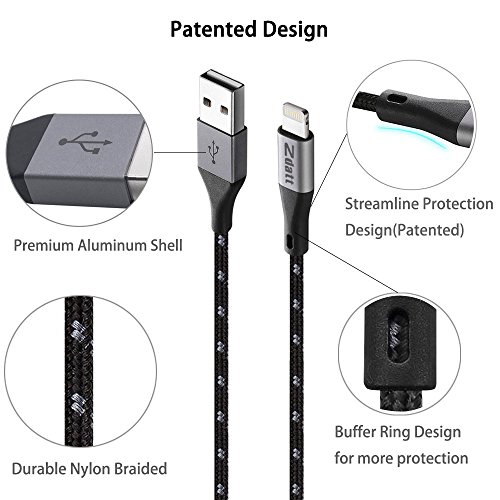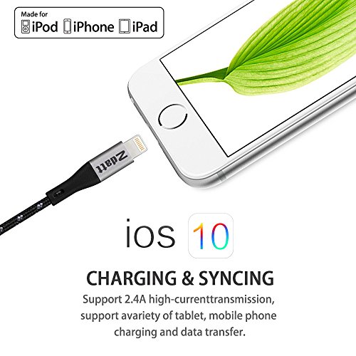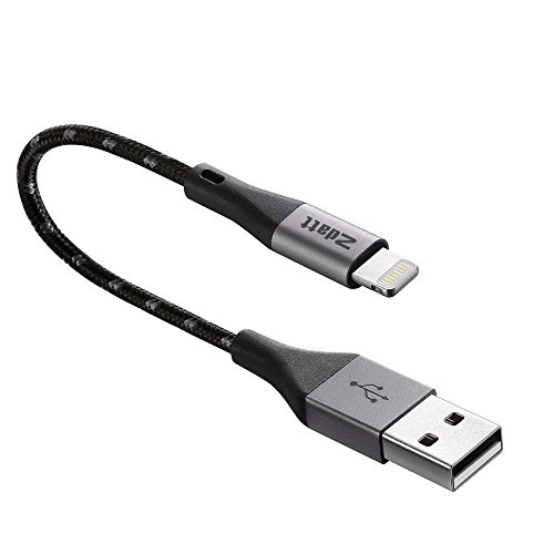 Zdatt Short iPhone Lightning Cable Apple MFi Certified 4 inch Durable Nylon Braided Lightning to USB Sync Charging Cord Cables with Aluminum Connector for iPhone 7/ 7 Plus/6s/6 Plus/5s/SE,iPad-Black