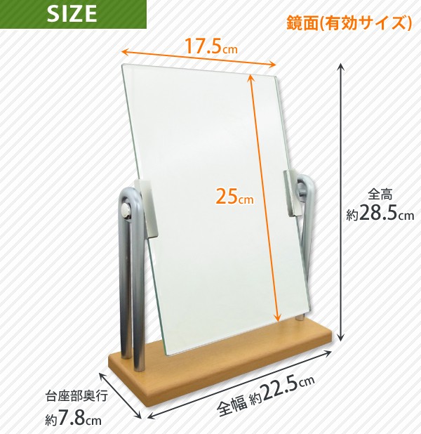 | サイズ | 外寸:約22.5×28.5×7.8cm 鏡面(有効サイズ):17.5×25cm 個装サイズ:22.8×29×7.8cm |
