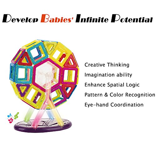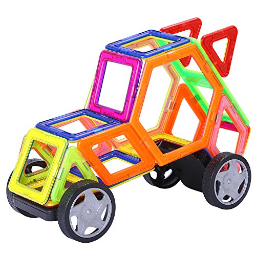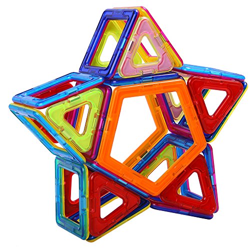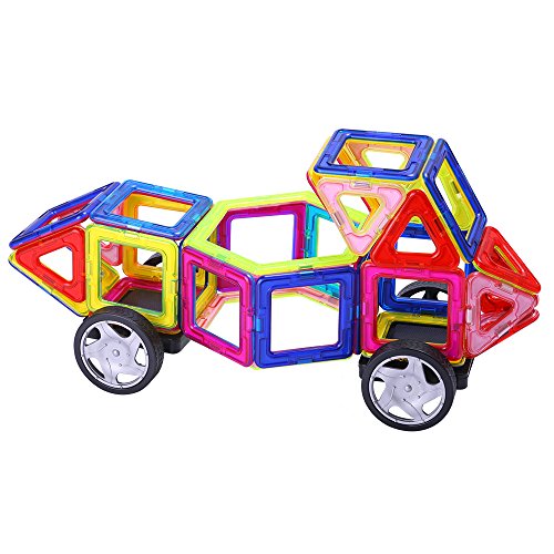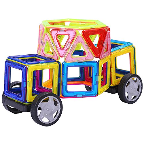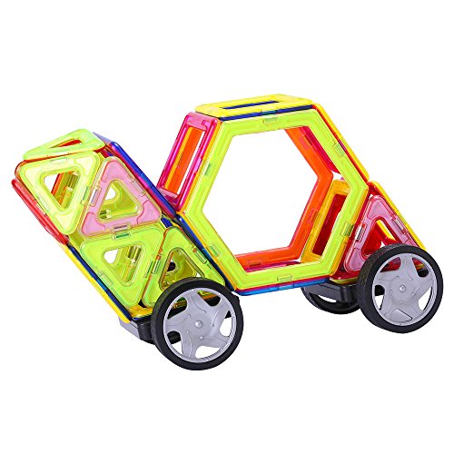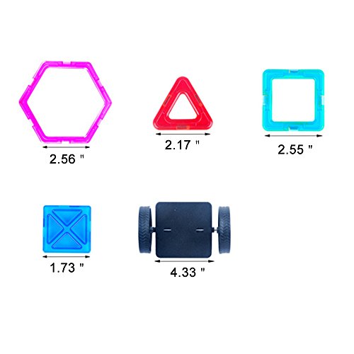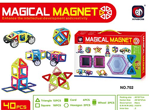 -. Feature : 40 pieces -12 triangles, 18 squares, 2 hexagons, 6 cards inserts and 2 sets of wheels and in Rainbow Colors. / Use food-grade ABS plastic magnets, conform to EN71 / Magnetic building blocks helps to open a door for kids and your imagination, creativity and coordination. / A good activity for kids and parents to play and spend time together. / Strictly quality control for each item before shipping, please reassured product quality.