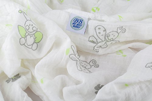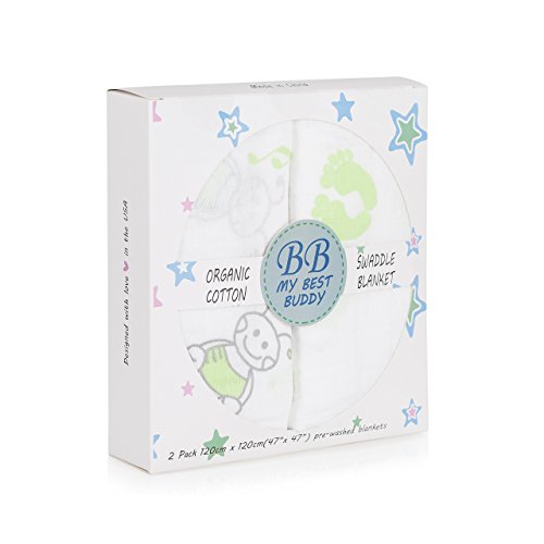 -. Title : BB MY BEST BUDDY Muslin Swaddle Blanket set - 100% Organic Cotton - pack of 2 - great for birthdays and baby showers