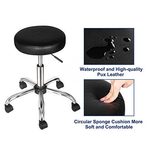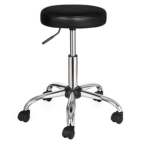 SONGMICS Adjustable Massage Salon Spa Stool Swivel Rolling Chair with Metal Chrome Frame ULJB62B