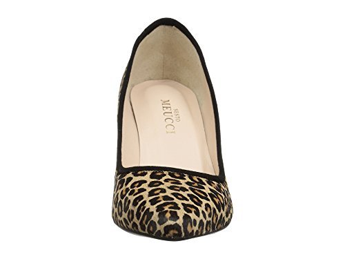 Binding : Apparel Product Description Add a little sass to your look in this Sesto Meucci pump. Calf hair leather uppers boast an allover animal print. Slip-on design. Suede leather trim. Smooth textile lining offers a great in-shoe feel. Lightly cushioned textile footbed. Suede covered heel. Man-made outsole. Made in Spain. This product contains real fur from a cow.Fur Origin: Spain.Real Fur has been artificially dyed and treated. Measurements: Heel Height: 3 1?2 in Weight: 8 oz Product measurements were taken using size 9, width M (B). Please note that measurements may vary by size. 0