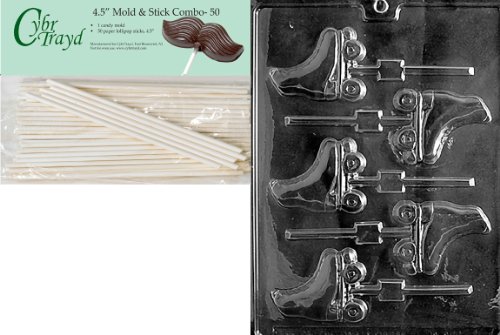 Cybrtrayd 45St50-S001 Roller Skates Lolly Sports Chocolate Candy Mold with 50 Cybrtrayd 4.5-Inch Lollipop Sticks