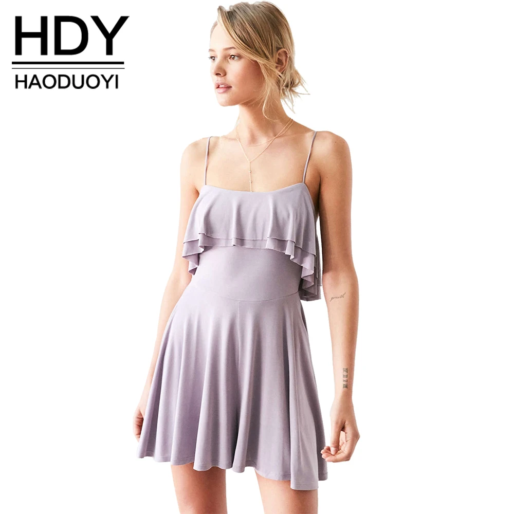HDY Haoduoyi Fashion Women Dress Women Clothing Light Purple Ruffles Straps Mini Dress Double Layer Slim Casual A-line Dress | |||||||||||||||||||||||||||||||||||||||