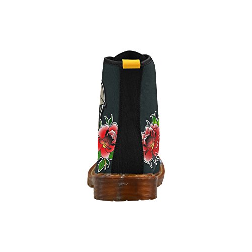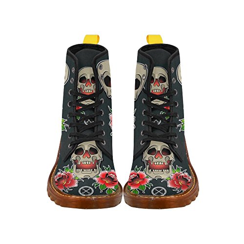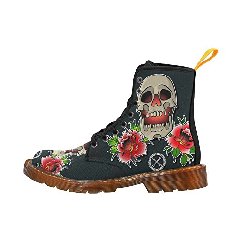 D-Story Shoes Skull and Rose Lace Up Martin Boots For Women