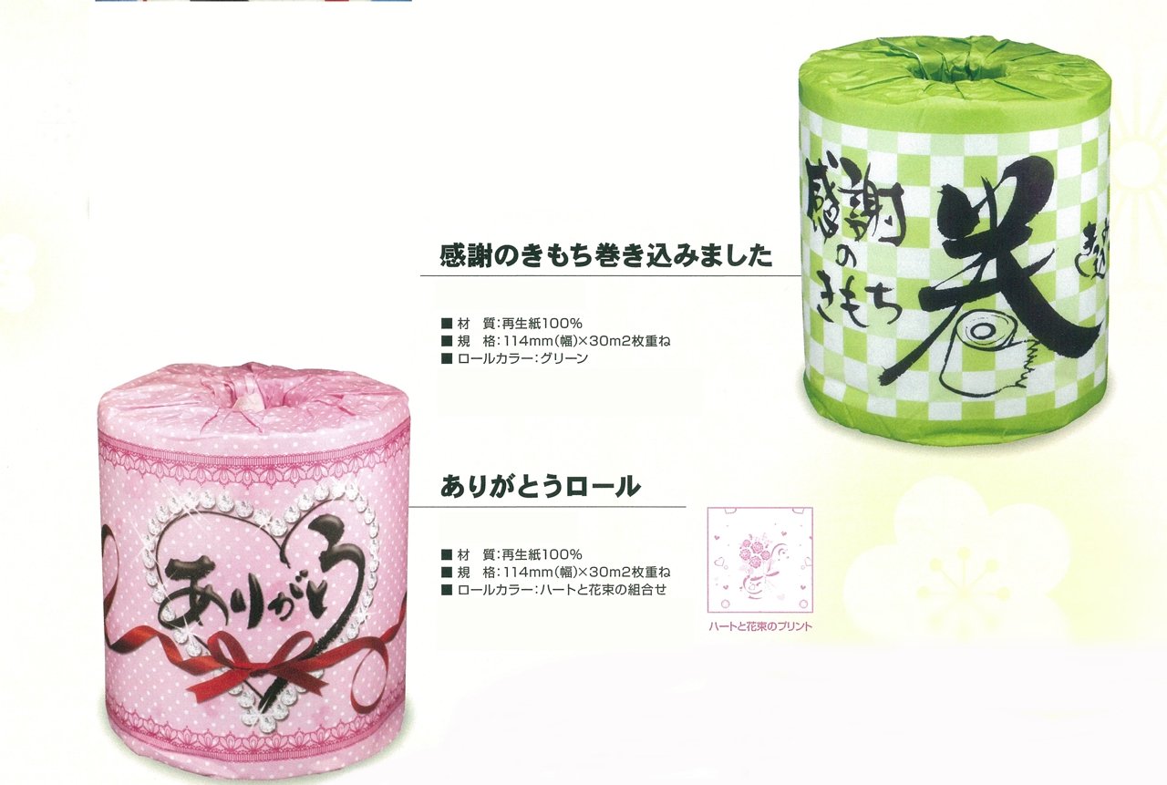 "Thank you roll" comes with a print of hearts and bouquets.