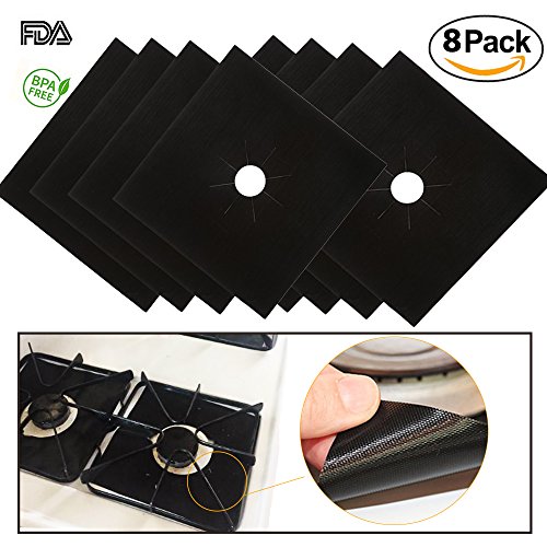 Gas Range Protector Set of 8 - WDK Heavy Stovetop Burner Protectors Liner Cover, 100% Non-stick, Dishwasher Safe, Easy to Clean, Reusable For Kitchen Use (Black)