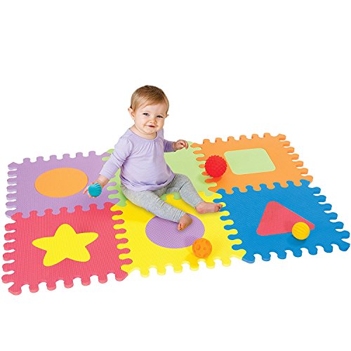 Infantino Topsy Turvy Soft Foam Puzzle Mat. From tummy time to their first steps - this extra thick foam mat creates a safe, soft place for little ones to play. The textured pieces provide early sensory interaction and the pop-out puzzle shapes encourage grow-with-me play. Includes six 17.5 x 17.5 puzzle squares for over 11 square feet of play space 0 |