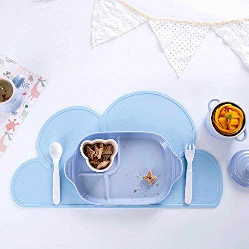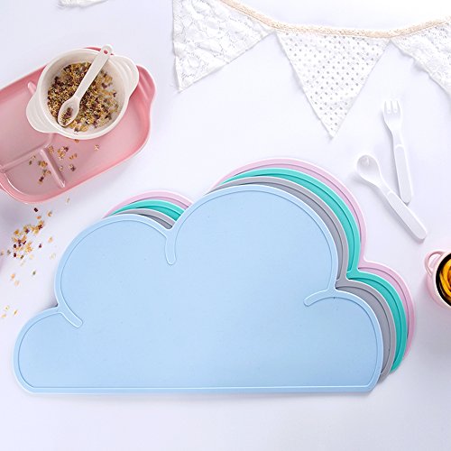 -. Feature : 100% FOOD GRADE SILICONE: Our kids placemat made of 100% food grade silicone, environmental silicone, FDA approved, BPA free, PVC, Latex and Phthalates. / KEEP CLEAN: The big size portable placemat provides a clean, safe eating surface when going anywhere. Placemat with open pocket to catch the mess food as it falls always keep the desk and floor clean. / PROMOTE APPETITE: Our placemat is cute cloud shape make your children interesting in eating food and decorative your desktop. Perfect for mealtime at home or restaurant. / EASY TO CLEAN: Reusable, gets most of the mess off. Easily wiped clean with a damp cloth and also dishwasher safe. / PERFECT FOR GIRLS & BOYS: Two colors can choose. Boys like blue color. Girls like Pink color. Baby placemat come with lifetime guarantee.