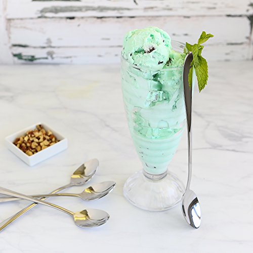 THE PERFECT WEIGHT AND SIZE TO SAVOR YOUR GUILTY PLEASURES. These stainless steel ice cream spoons are the perfect weight and size to enjoy your favorite guilty pleasure; Savor tiny bites of special ice cream, frozen yogurt, sundaes, or custard; And we designed these nifty little spoons to fit nicely in both adult and child hands.