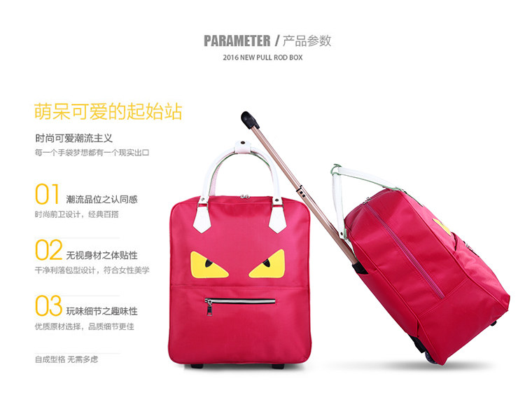 升级后的拉杆是用按扭控制升缩的,可顺拉,可以推拉