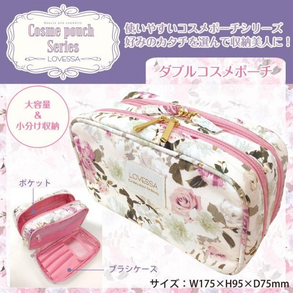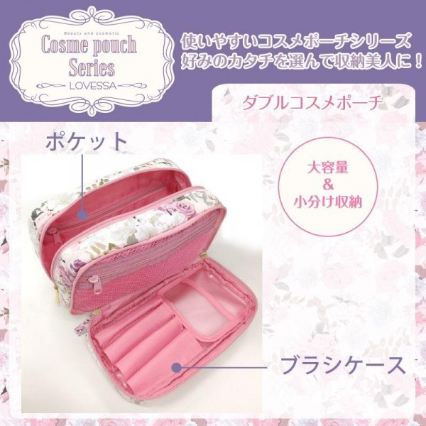 | 「1分でも惜しい朝、メイク時間を短くしたい!でも、ちゃんとメイクしてキレイになりたい!」そんな忙しい女性たちの願いを叶える、オトナ可愛いデザインで機能的に使えるコスメ収納ポーチです。人気のダブルコスメポーチは、収納部分がダブルでたっぷり入るのにアイテム別にきちんと仕分けできるからスッキリスマート! |