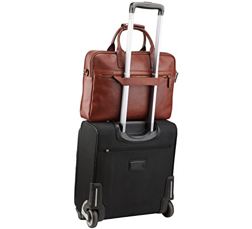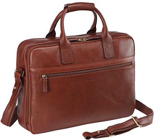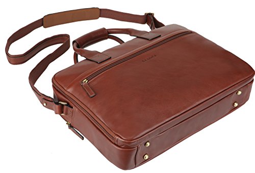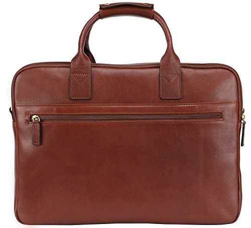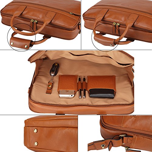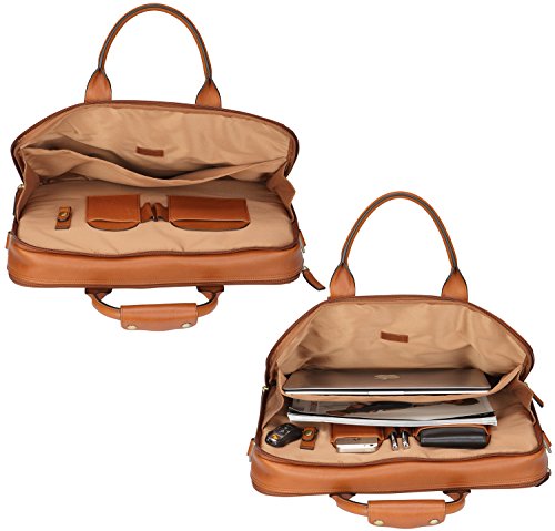 This briefcase made of Italian vegetable tanned leather. It is easy to get scratching and might get scar or fleck on surface, those are the natural witness of a created leathers exactly same in the world. Those imperfect real could not be cleaned. The longer you use the vegetable tanned leather products, the more gloss it will be. MAIN FEATURE Multiple sections and detailed interior design, provided extra capacity, enough for 1-2 nights business trip. Top handles with 4.1 inch drop Shoulder strap made of canvas and leather with shoulder pad detachable and adjustable adjust drop range 12.25-23 inch comfortable and durable when you are fully loaded. Exterior front 1 x zippered pocket back 1 x zippered pocket, interior with tape for carry bag on luggage Interior 1st main section: 1 x full length pocket 1 x hanger, for key or employee¡?s card 2 x pen slots 2 x slip pockets 2nd main section 1 x zippered pocket 2 x slip pockets 1 x padded laptop sleeve Dimension: 15.75 L * 3.1 D * 11.4 H inches 40 L * 8 D * 29 H cm Capacity: padded laptop sleeve fits up to and most model 14 inch laptop. main sections fits 2 inch binder Net Weight 1.33kg Color: Beige Brown 0
