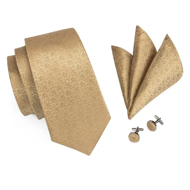| [해외]2017 새로운 패션 고귀한 Gloden 꽃 실크 넥타이 공식적인 연회 웨딩 데이트 파티 넥타이 손수건 커프스 세트 C-532 |