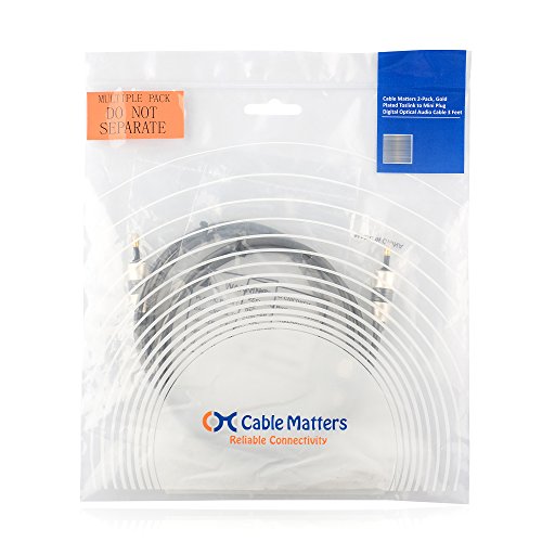 Studio : Cable Matters Publisher : Cable Matters Binding : Electronics Product Description Connect More with Cable Matters Audio Cables S/PDIF Toslink to Mini The Cable Matters Toslink to Mini Toslink Digital Audio Optical Cable provides any easy solution for connecting a Mac, mini desktop PC, PS4 headset, Google Audio Chromecast to a Soundbar, A/V Receiver, Xbox One gaming console. Premium Construction This digital optical cable combines a low-jitter, synthetic fiber, robust metal connectors with a gold-plated housing, and a flexible but sturdy PVC jacket to provide authentic audio with pure sound. Package Contents - 2 x Toslink to Mini Digital Audio Cables Warranty Limited Lifetime Warranty and Product Support 0