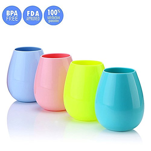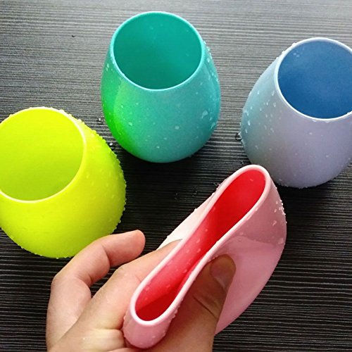 DESIGN: Kids love the all-purpose,flexible,no-worry design. The bottom of flat design make it stand on the table firmly,not easily collapse. Unlike delicate stemware,your silicone wine glasses are easy to care for;No-fuss party cleanup and no worries about scratches,chips,or cracks. The beautifully shaped stemless style features a colorful and stylish appearance that goes well with college graduation,black-tie affairs and casual campfire chats. The silicone wine glasses innovative shatterproof design differ from all the drawbacks of regular wine glasses that you never worry about broken glasses,broken stems and rest easy with no more mess to clean up.