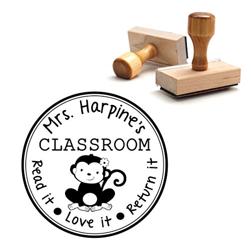 -. Title : Black Ink, Custom Self Inking Stamp, Teacher From the Classroom Of Library, Girl Monkey Read it Love It Return It Personalized Round 3 Lines Customized Personal