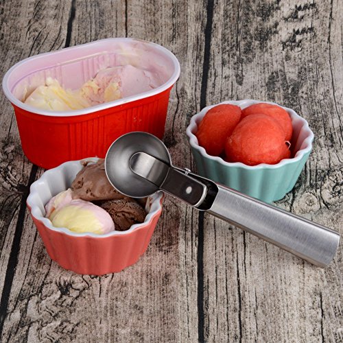 Stainless Steel Ice Cream Scoop,Heavy Duty Cream Disher,Metal Handle Cookie Scoop Dipper with Trigger and Spring Action for Ice Cream and Fruits Digging Spherical Shape Tools
