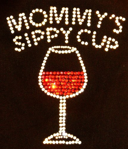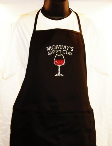 Classic Black Apron - " Mommys Sippy Cup " - Rhinestone Poly Cotton Blend Two Pocket Wine Themed Apron