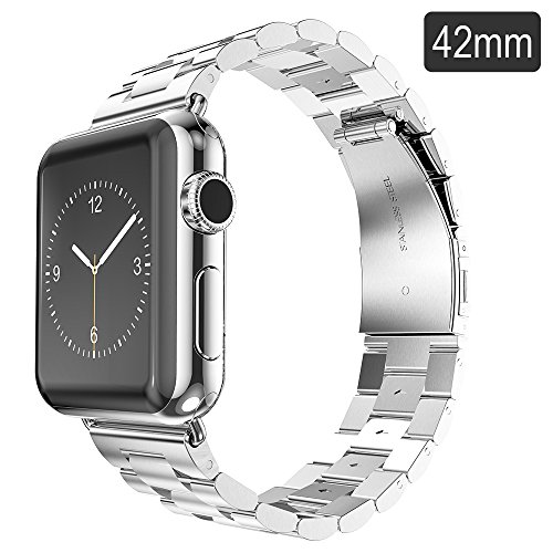 - Feature : Band Material: Original metal clasp, Precision stainless steel material. Designed as replacement strap for Apple Watch 42mm. / Built-in stainless steel connection adapters, allow you to easily Replacement watchband. / Double button insurance folding clasp: Double button design, prevent touch the button by mistake, safe and beautiful. / Fit wrist design: Carefully designed according to the wrist, Wear comfortable. / NOTE: The adapter is replaceable, Please tighten the screws on the adapters before using.