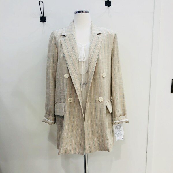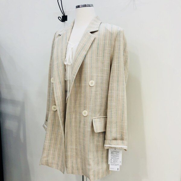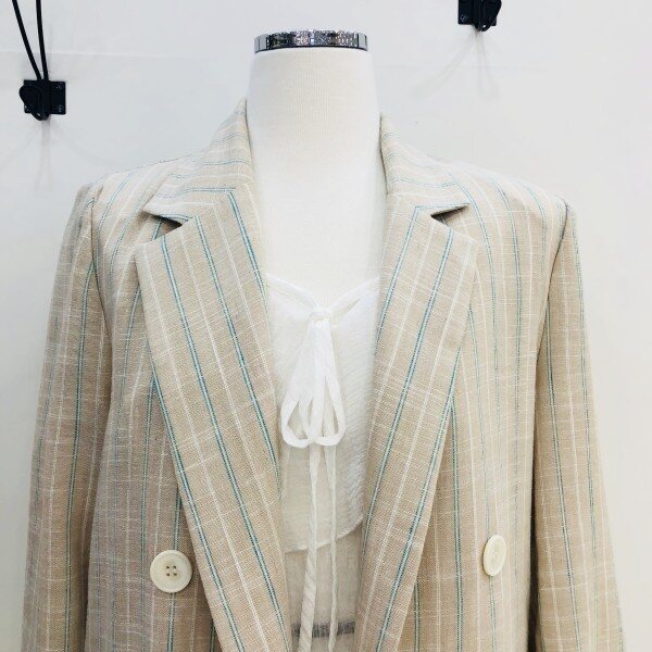 베이지 바탕에 녹색의 체크 포인트가 들어가있는 자켓입니다. 린넨 소재이며 굉장히 가벼워 여름에 착용하기에 좋은 제품입니다.** 저희 멜로디가든매장은 상품이 매장에서 같이 판매가 이루어지기때문에 매장에서 선판매시 배송으로 받아보시는 기간이 5~7일 소요가 됩니다. 이점 양해부탁드립니다^^ 감사합니다♡**