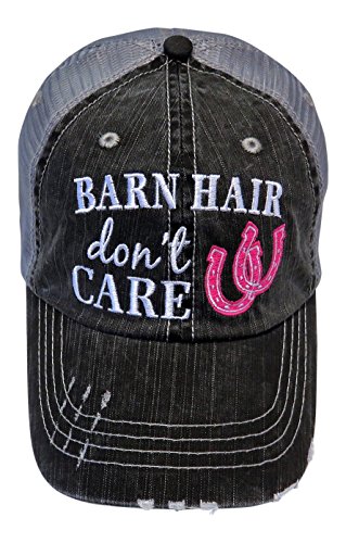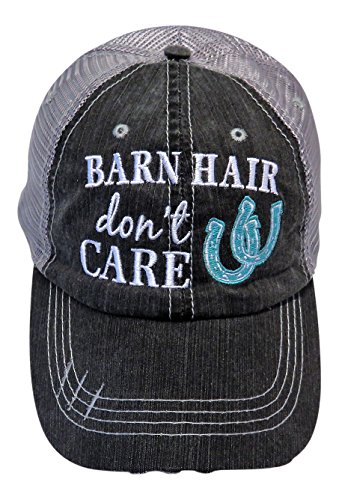 Embroidered Barn Hair Don't Care Distressed Look Grey Trucker Cap Hat Farm