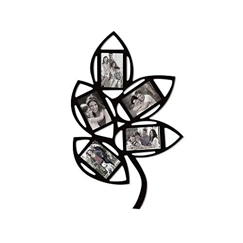 -. Title : Adeco PF0345 Decorative Black Wood Leaf Wall Hanging Collage Picture Photo Frame, 5 Openings, 4x6"