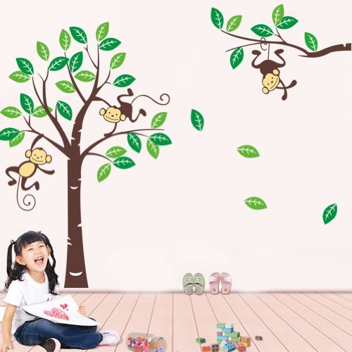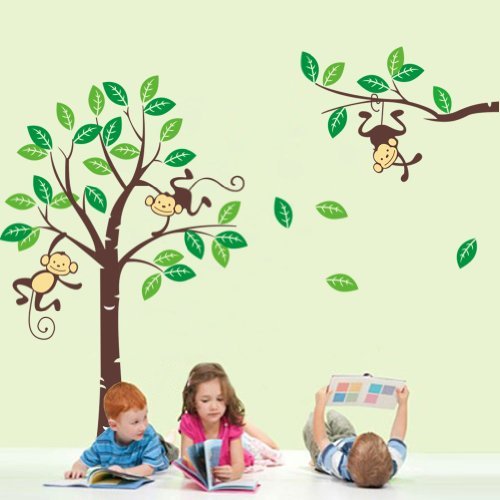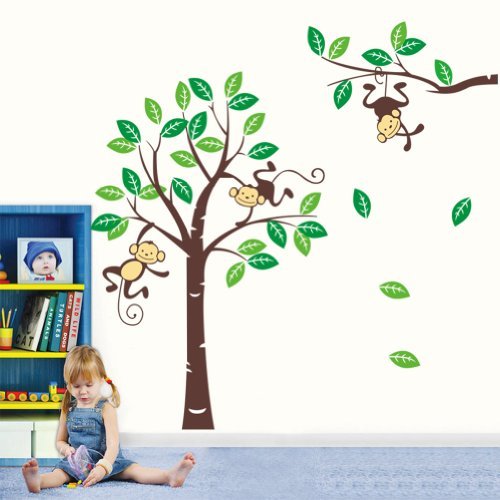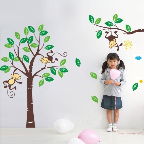 3 X Cute Monkey Climbing on Beautiful Tree Monkey Wall Decal Nursery Wall Decal