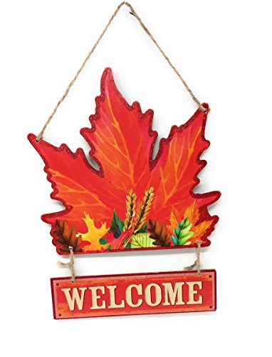 Glittery Fall Harvest Hanging Wooden Welcome Sign, 13" (Leaf)