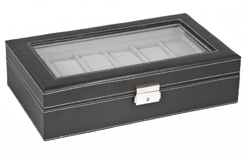 - Title : Watch Box Large 12 Mens Black Leather Display Glass Top Jewelry Case Organizer