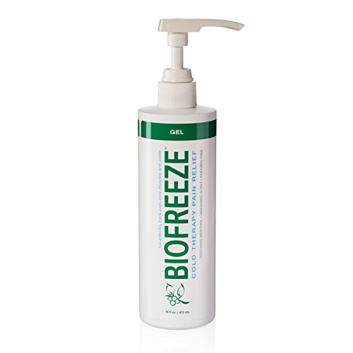 -. Feature : Biofreeze Pain Reliever is the #1 clinically used and recommended topical analgesic of hands-on healthcare professionals and for best results use in combination with their care (find one in your area on the Biofreeze website) / Chiropractors, physical therapists, massage therapists, podiatrists and athletic trainers use Biofreeze to provide immediate pain relief from many common conditions such as arthritis and other causes of muscle and joint pain / Biofreeze applies easily and penetrates quickly to relieve aches and pains related to sore muscles and joints, sprains, strains and bruises and can be applied for recovery to body parts such as the hand, wrist, elbow, foot, ankle, knee, hip, back, neck and shoulders / This legendary pain relief formula is NSAID-free, clinical research-proven, fast acting and long lasting, completely free of parabens and propylene glycol, made with USP grade ingredients, and available in both original green and dye-free versions / The 16 Ounce Gel Pump is particularly well-suited for massage applications on larger muscle areas that benefit from the hands-on approach and is recommended for practitioners who see less than 80 patients per week