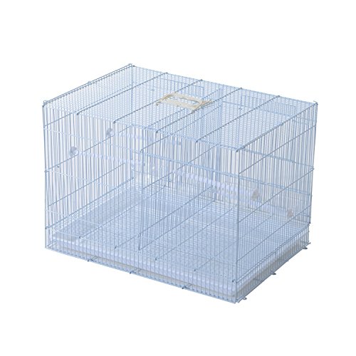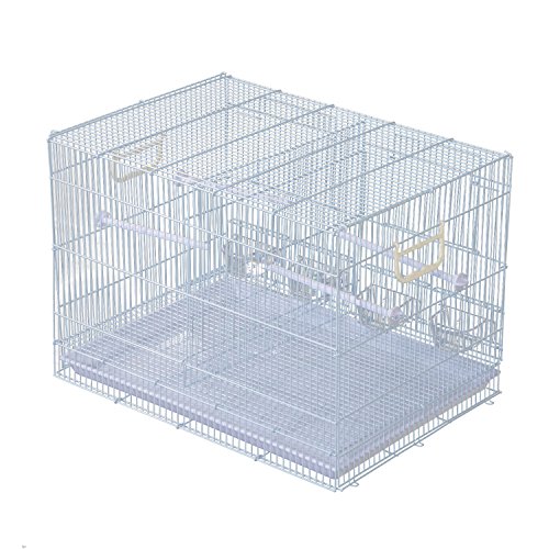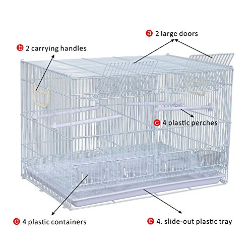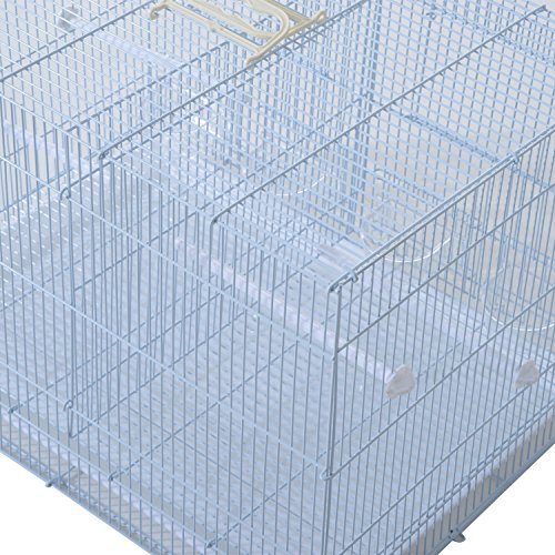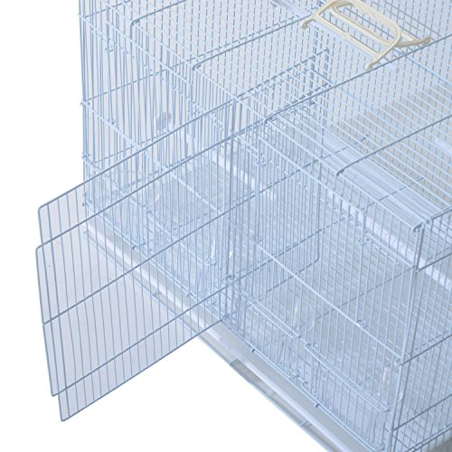 -. Feature : Ideal and roomy bird house for small to medium size birds such as finch, parrot, cockatiel, conure, canary, parakeet and others / Solid powder-coated metal, steel wire and durable plastic construction for years of use and enjoyment / An door conveniently located on the front provides easy access to the inside area / Includes plastic perches and plastic containers for your birds to enjoy / Overall Dimensions