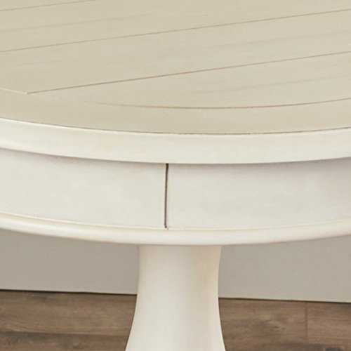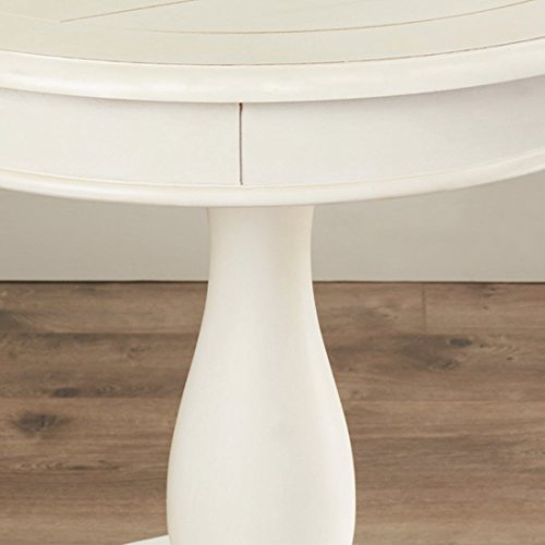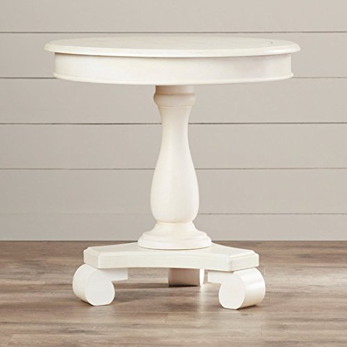 -. Brand : Lark Manor Bezons End Table French Country Style -. Color : White -. Feature : Hardwood -. ProductGroup : Furniture -. ProductTypeName : HOME_FURNITURE_AND_DECOR -. Title : Bezons End Table - French Country Style - Made with Select Veneer and Hardwood Solids - Round Shape Table - Distressed Finish - 1 Year Warranty! (White)