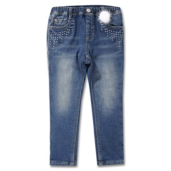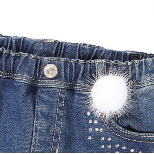 따뜻한 EF벨보아 원단을 안감으로 사용한 여아 데님팬츠로써 뽀송한 밍크퍼방울을 탈부착 악세서리로 셋트구성하여 멋스러우면서도 러블리한 이미지의 룩을 연출