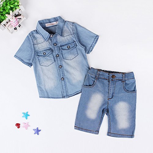 -. Title : Boys Casual Fashion Denim Suit 2PCS Outfit (Denim Shirt+Shorts)