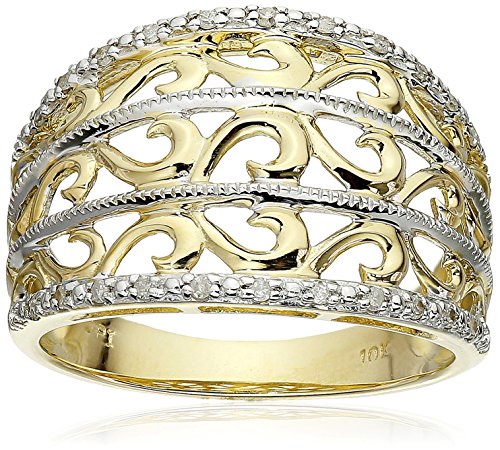 -. Title : 10k Yellow Gold Filigree Diamond Ring (1/10 cttw, I-J Color, I2-I3 Clarity)
