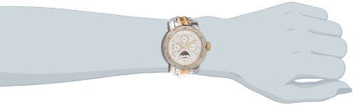 -. Feature : Round watch in stainless steel featuring bezel set with 12 diamond hour markers / Quartz movement with analog display / Mineral crystal dial window / Features four subdials, gold and silver-tone link bracelet, and foldover clasp with double push-button safety closure / Water resistant to 50 m (165 ft)