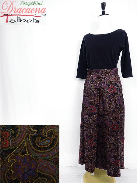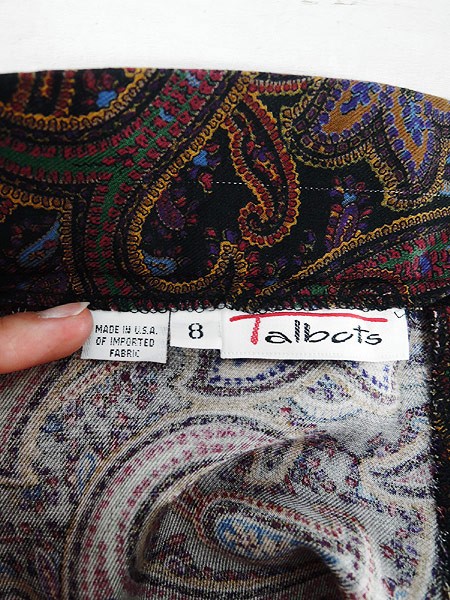 Ladies ブランドTalbots タルボット カラー黒ベース メール便不可 コンディション★★★ 素材レーヨン 表記サイズ8 スタッフコメントウェスト数か所に糸引きあり。 実寸サイズ 着丈 88 cm ウエスト 28 インチ( 72 cm) ※ウエスト・ヒップ以外は平置き採寸